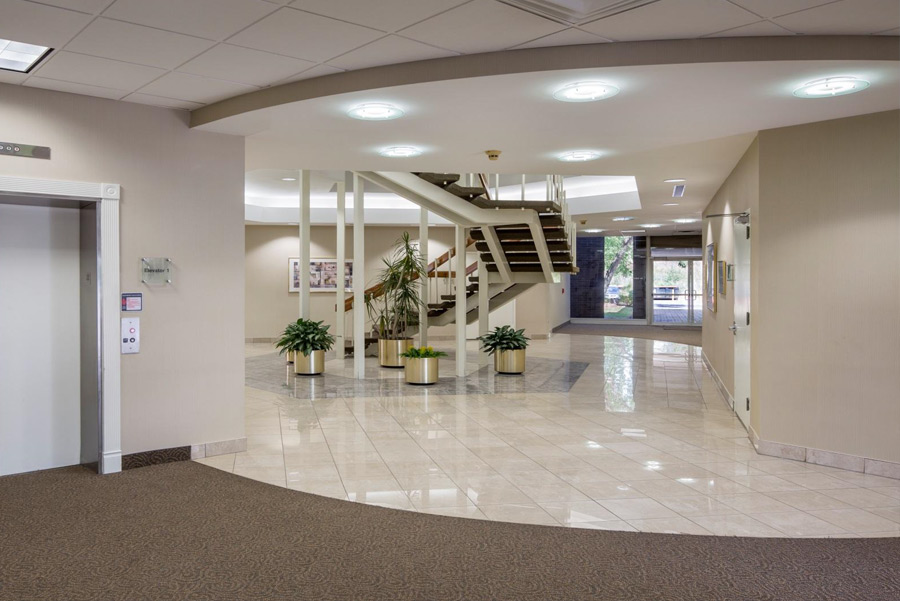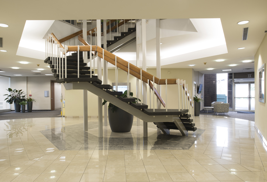 with open stairwell; each with its own individual entryway, elevator and restrooms